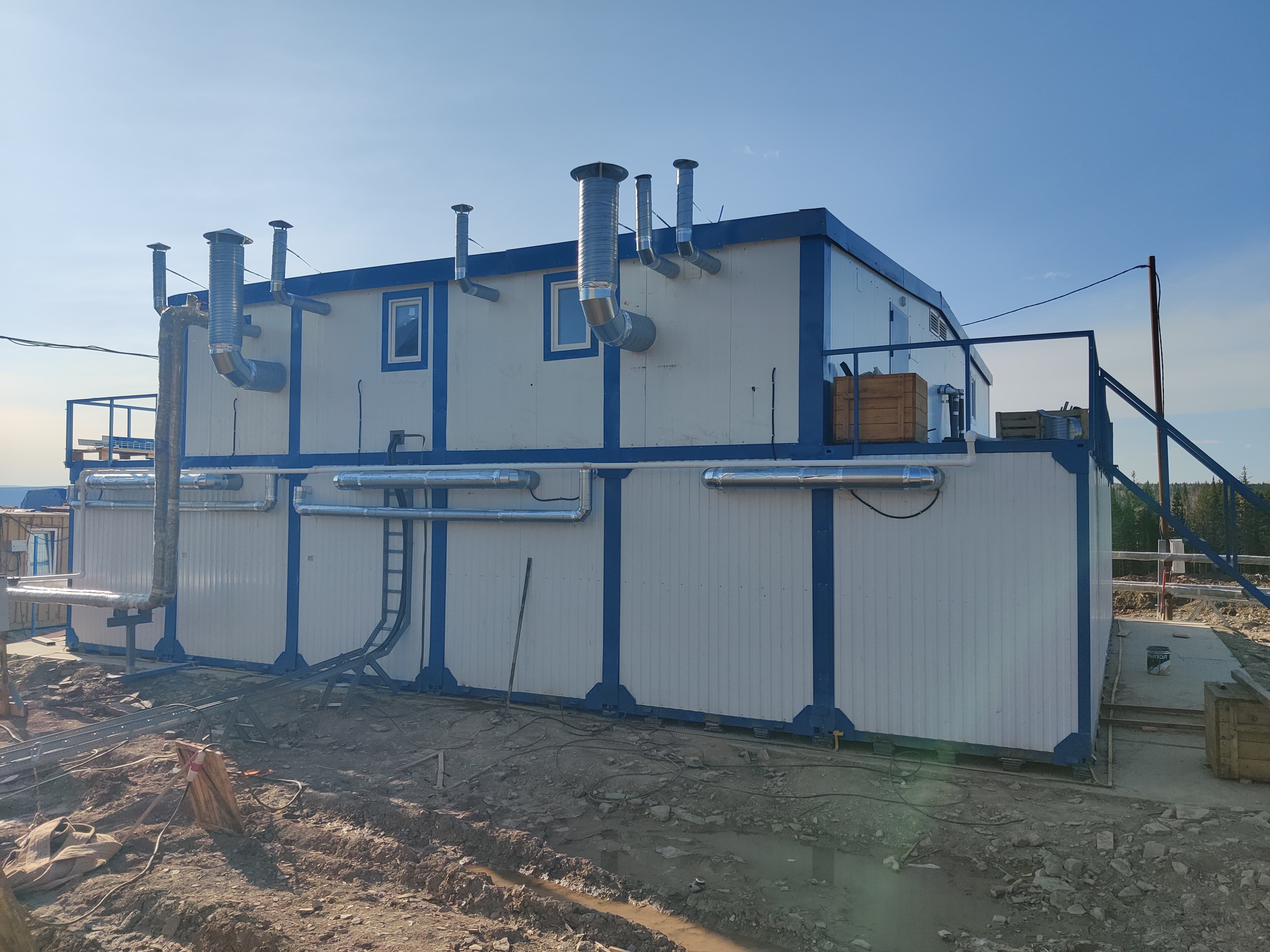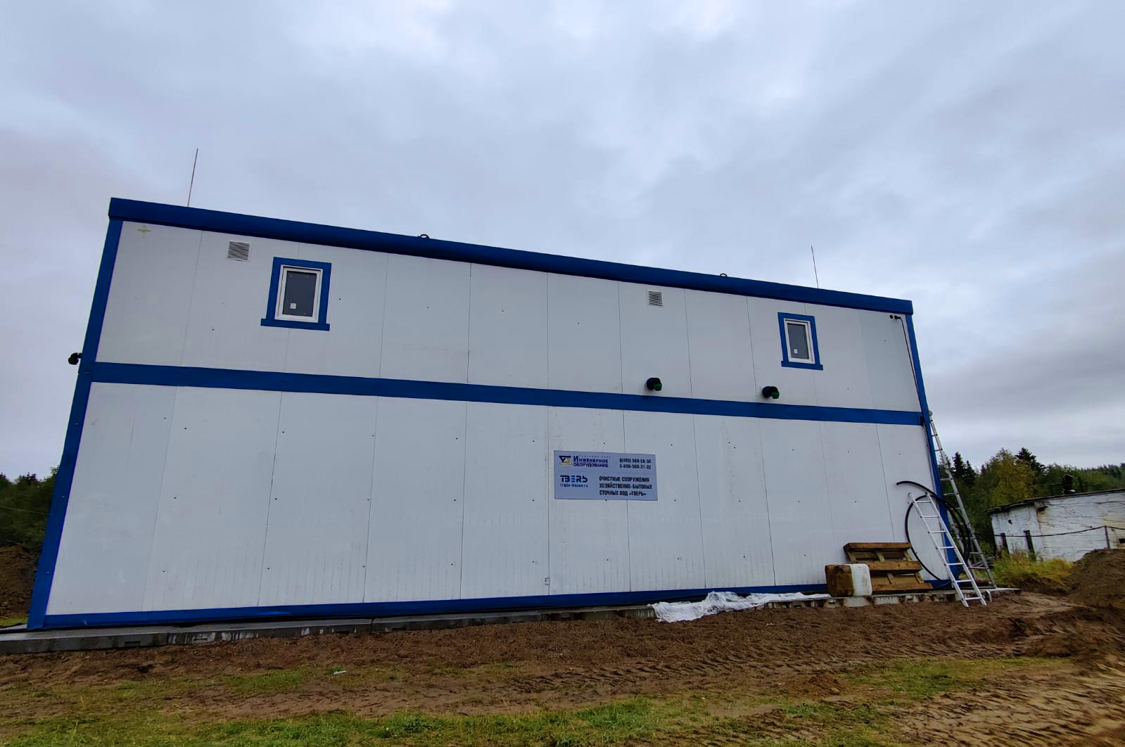Станция очистки бытовых сточных вод "ТВЕРЬ-100С" представляет из себя утепленное здание из блок-модулей, установленных на фундаменте, со всем технологическим оборудованием внутри.